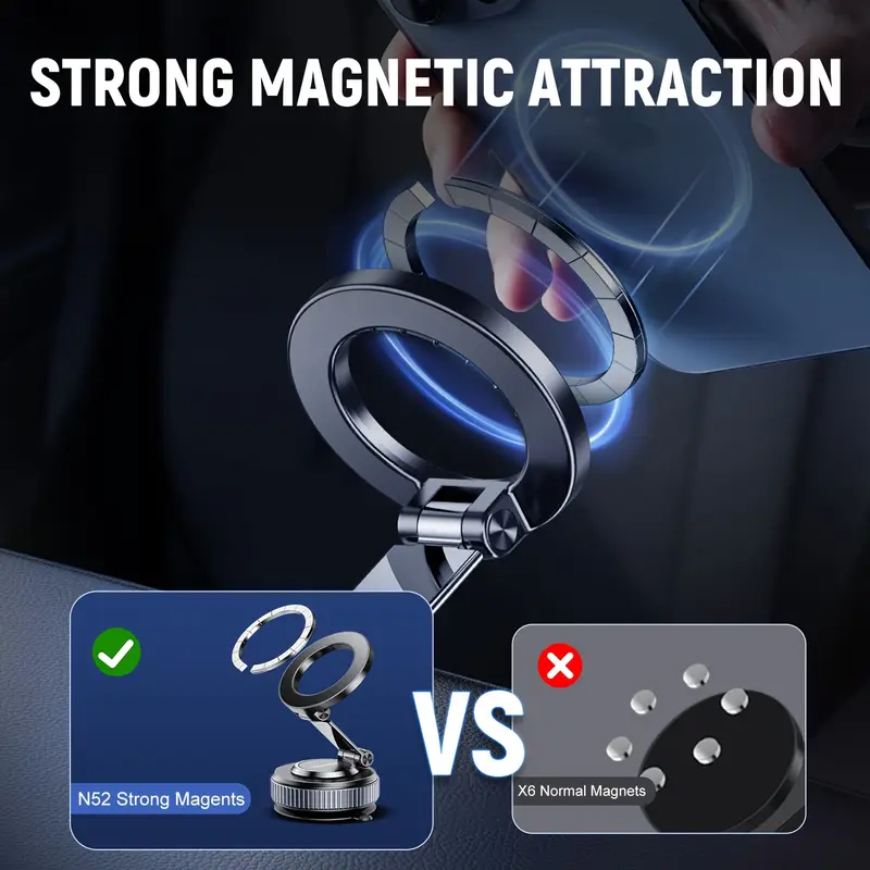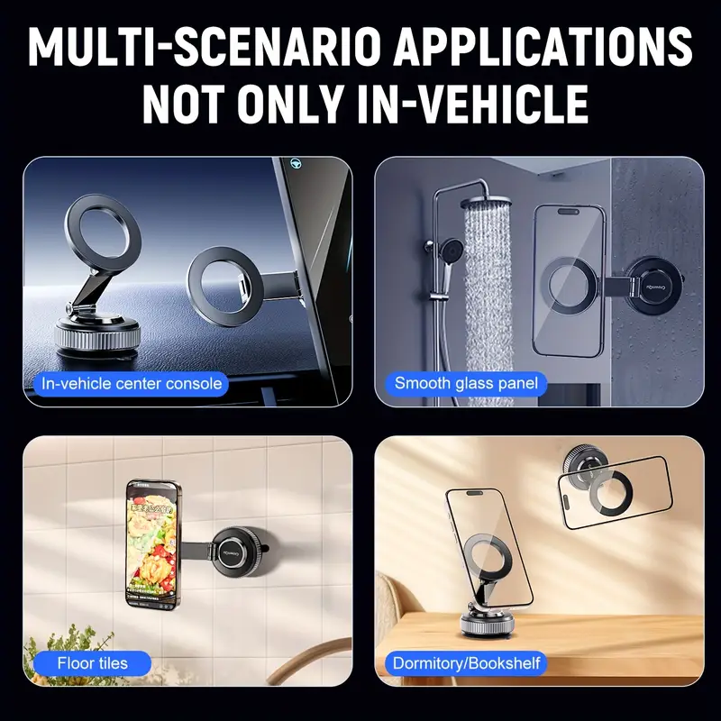 4-teiliges Magnetisches Handyhalter-Set, Drehbarer Auto-Vakuum-Saugnapf-Handyhalter, Ausziehbar, Faltbar 360° Drehbarer Magnetischer Handyhalter, Zinklegierung Material, Superstarker Saugnapf-Magnetischer Auto-Handyhalter
